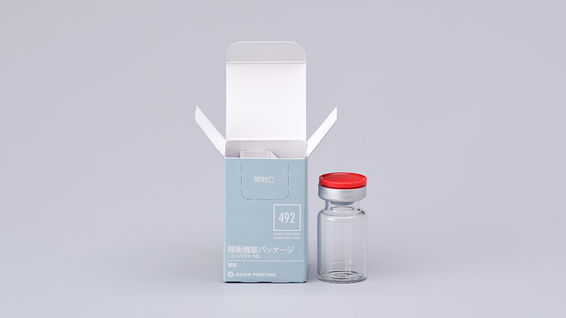 バイアル・ボトル品向け自動包装に対応した緩衝機能パッケージ